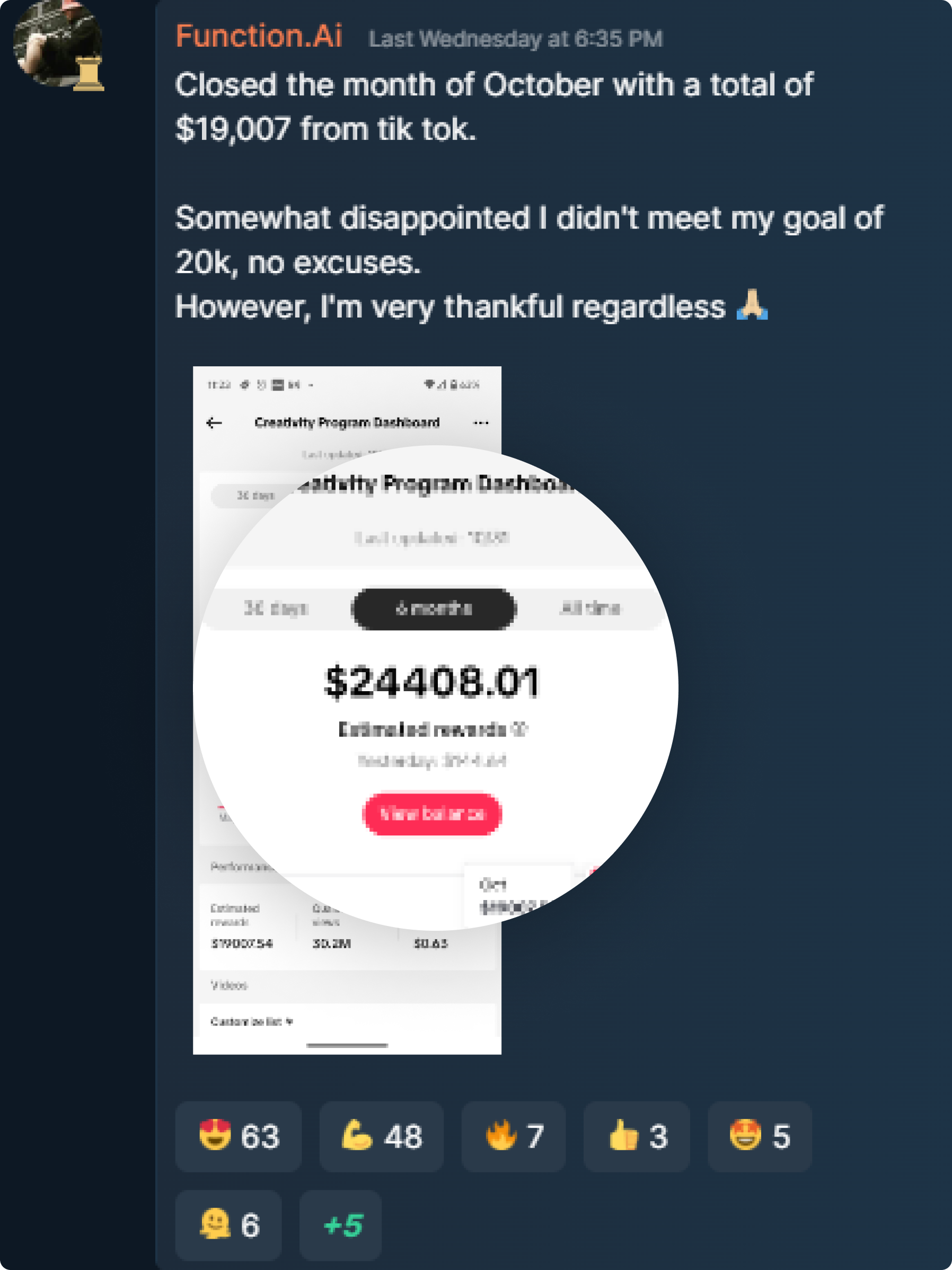 Seth worked a part-time job and had no monetizable skills when he first joined The Real World… He has since learned Content Creation & AI which has scaled his income to over $10,000/month.